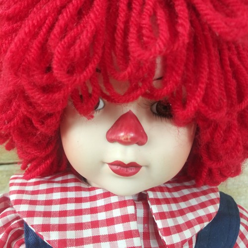 Raggedy Ann Andy Seymour Man Porcelain 16 Doll Blue Overalls Red Checker Ebay